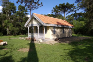 HISTÓRIA – A edificação que abriga o museu foi doada à Unicentro no ano de 1994. O imóvel segue os moldes da arquitetura popular de madeira do Paraná, com influência da imigração europeia, e destaca suntuosos adornos em lambrequins – recortes pendentes feitos de madeira que circundam toda a construção.
